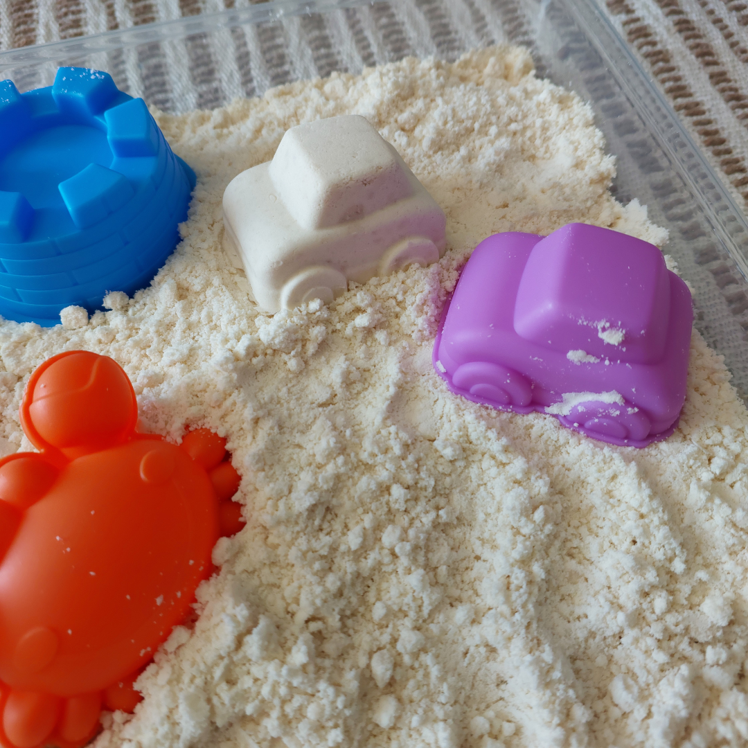 Moon Sand – soft, moldable, and endlessly fun for imaginative building.